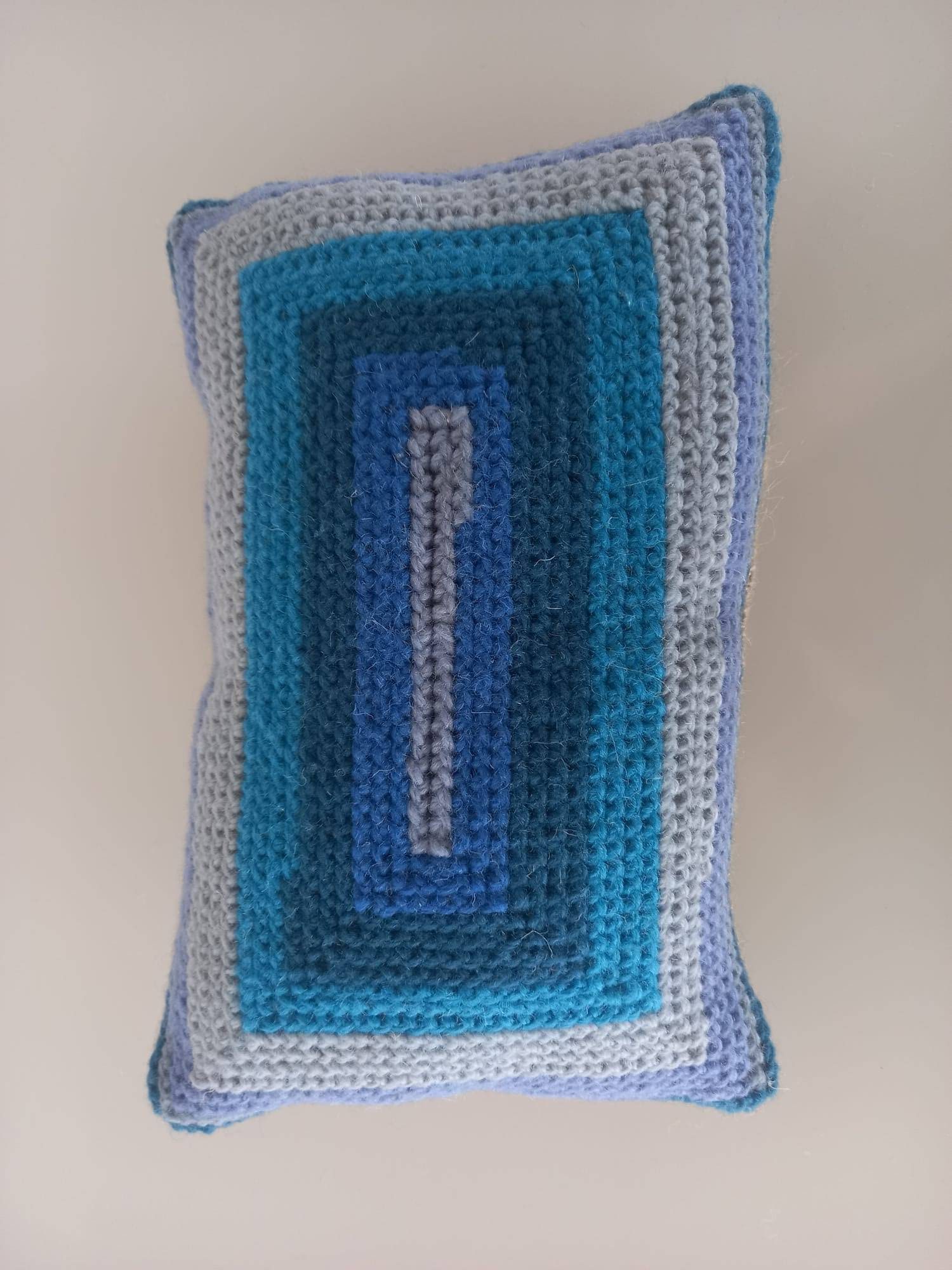 A almofada traz o equilíbrio perfeito entre conforto e cor. Produzida em arraiolos artesanal, combina Vários tons de azul que evocam o mar e o céu, criando uma peça que transmite calma e harmonia.