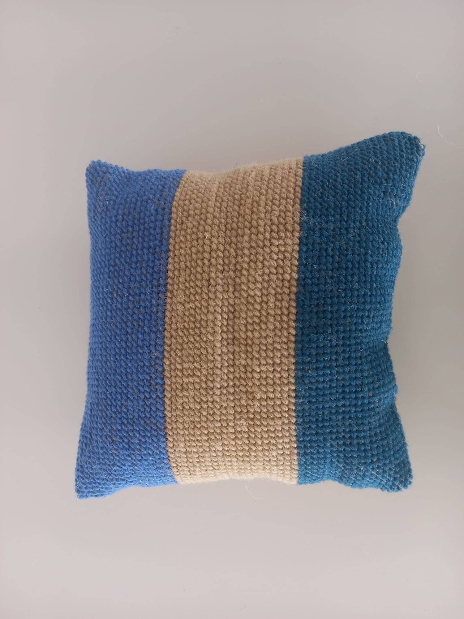 Esta almofada feita à mão combina suavidade, estilo e dedicação em cada ponto. O padrão em linhas azul e beje, cria um visual delicado e moderno, perfeito para dar charme a qualquer sofá, cama ou cadeirão. Ideal para decorar ou simplesmente tornar o espaço mais aconchegante!