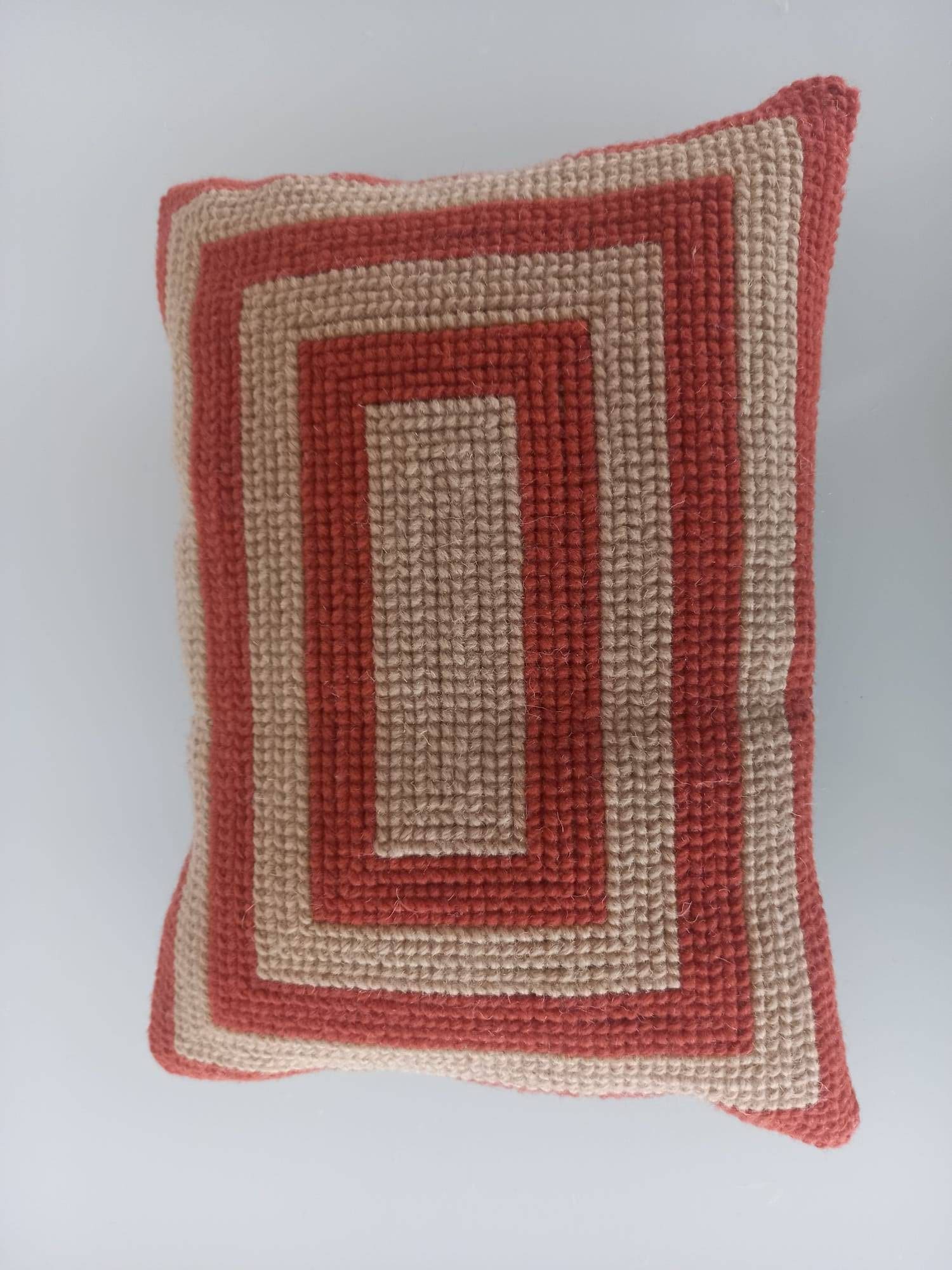 A almofada traz o equilíbrio perfeito entre conforto e cor. Produzida em arraiolos artesanal, combina bege e laranja, criando uma peça que transmite calma e harmonia.