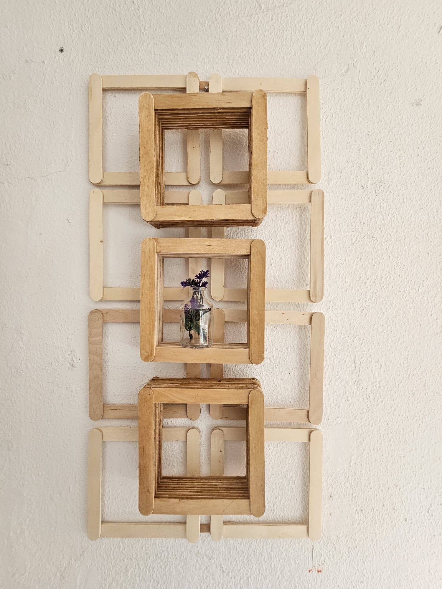 Feito à mão com paus de gelado cuidadosamente alinhados, cria um efeito geométrico moderno e equilibrado que se adapta a qualquer estilo de decoração, do rústico ao contemporâneo.